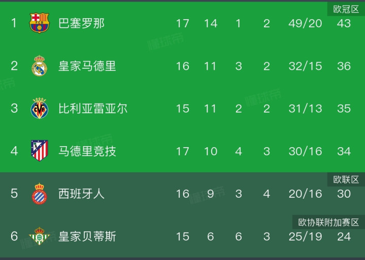 首先,巴塞罗那彻底坐稳第一的同时,积分也上升到了43分,领先排名第二且少赛一轮的皇家马德里多达7分,这无形中也给皇马带来了更多的压力,尤其是给皇马主帅阿隆索带来了不小的负担。而比利亚雷亚尔则是位居第三,马德里竞技也凭借本场的胜利,坐稳了第四,或许对于他们而言,更多的目标是守住联赛的欧冠资格。西班牙人队和皇家贝蒂斯队则紧随其后。